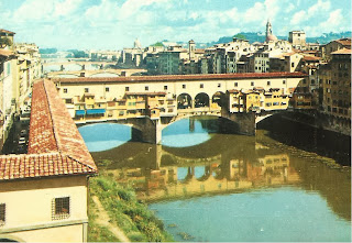 Gyönyörű látvány az Arno folyó, mely alattunk hömpölyög és számos híd köti össze a házak sokaságával beépült két városrészt. A középkori Európa kibontakozni kezdő forgalmának bankári szolgálatát elsősorban Firenze látta el! A népeknek a keresztes háborúkkal kifejlődő kulturális és gazdasági kapcsolataiból Genova és Velence főként a tengeri szállítás és kereskedelmi útján vettek részt, Firenze bankárkodott és a meginduló pénzforgalmat bonyolította le.